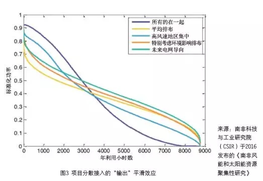 在具體項(xiàng)目接入層面,電源與電網(wǎng)不協(xié)調(diào)是可能存在的。項(xiàng)目沒(méi)有足夠分散的接入系統(tǒng),造成部分變電站與線路超容,造成配電網(wǎng)絡(luò)阻塞,是部分地區(qū)風(fēng)電項(xiàng)目建設(shè)與布局的問(wèn)題,特別是在4.95 萬(wàn)千瓦項(xiàng)目廣泛存在的時(shí)期。過(guò)于集中也會(huì)對(duì)系統(tǒng)運(yùn)行提出更高的要求,阻礙機(jī)組不同出力特性“平滑”效應(yīng)的發(fā)揮(圖3 給出了不同接入方式的集合出力特性)。