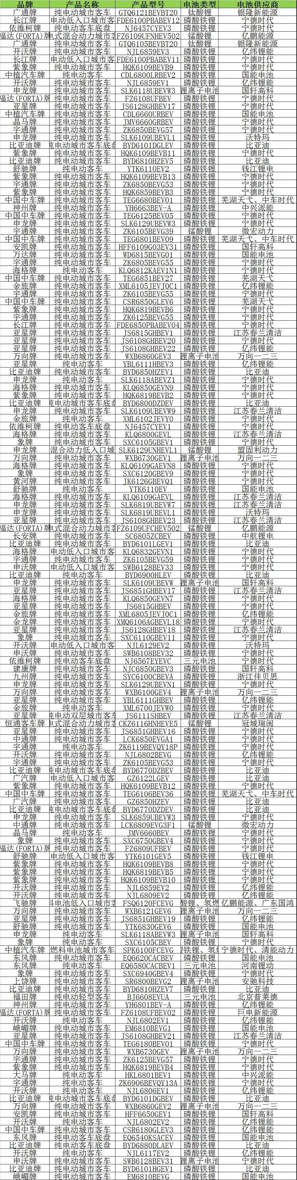 這3款搭載三元電池的純電動客車車型分別為南京汽車集團有限公司申報的依維柯牌純電動客車底盤、東風(fēng)汽車集團有限公司申報的東風(fēng)牌純電動客車和北汽福田汽車股份有限公司申報的福田牌純電動輕型客車,分別由寧德時代、河南鋰動和北京普萊德提供三元動力電池。
