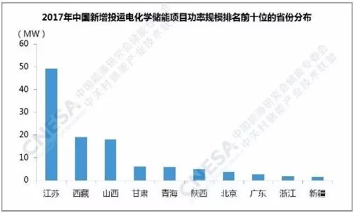 從地區(qū)分布上看,項目主要集中在華東、華北、華南和西北地區(qū)。其中江蘇省的裝機規(guī)模最大,接近50MW。