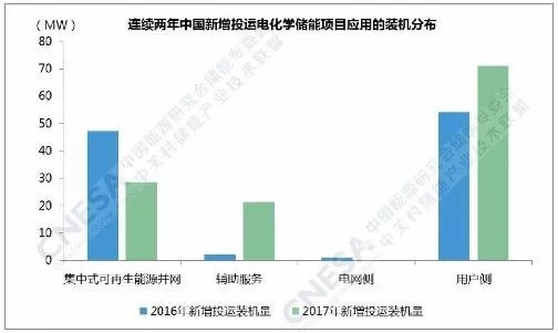 從應(yīng)用分布上看,新增投運項目全部應(yīng)用在集中式可再生能源并網(wǎng)、輔助服務(wù)和用戶側(cè)領(lǐng)域。其中,用戶側(cè)領(lǐng)域的功率規(guī)模最大,超過70MW,輔助服務(wù)領(lǐng)域的同比增速最大,接近1000%。