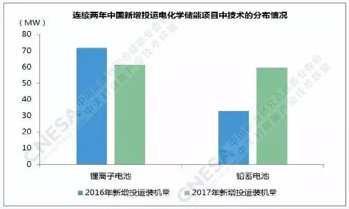 從技術(shù)分布上看,鋰離子電池和鉛蓄電池的功率規(guī)?;境制?,比重分別為51%和49%,同時鉛蓄電池的同比增速最大,超過81%。