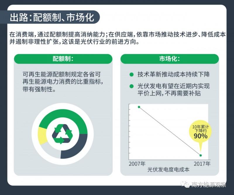 在降電價(jià)的大背景下,配額制的出臺(tái)和執(zhí)行充滿變數(shù)。林伯強(qiáng)認(rèn)為,配額制確實(shí)能夠解決棄光問題,但它實(shí)質(zhì)上等于漲電價(jià)?,F(xiàn)在政府希望增加下游行業(yè)的競爭力,對漲電價(jià)會(huì)心存顧慮。