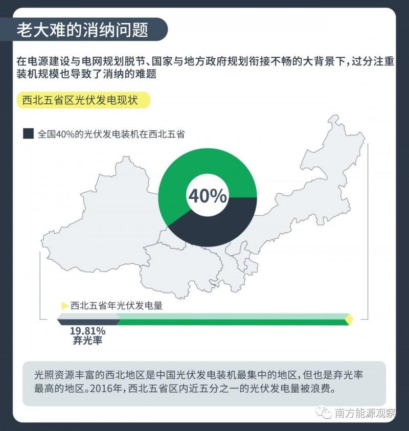 由于電源建設(shè)與電網(wǎng)規(guī)劃脫節(jié),當(dāng)?shù)叵{能力有限,在電網(wǎng)規(guī)劃尚未落實(shí)的情況下,大規(guī)模光伏電站投產(chǎn)以后出現(xiàn)并網(wǎng)困難的問題。國家能源局?jǐn)?shù)據(jù)顯示,2016年西北五省區(qū)(陜西、甘肅、青海、寧夏、新疆)平均棄光率高達(dá)19.81%,相當(dāng)于近五分之一的光伏發(fā)電量被浪費(fèi)。