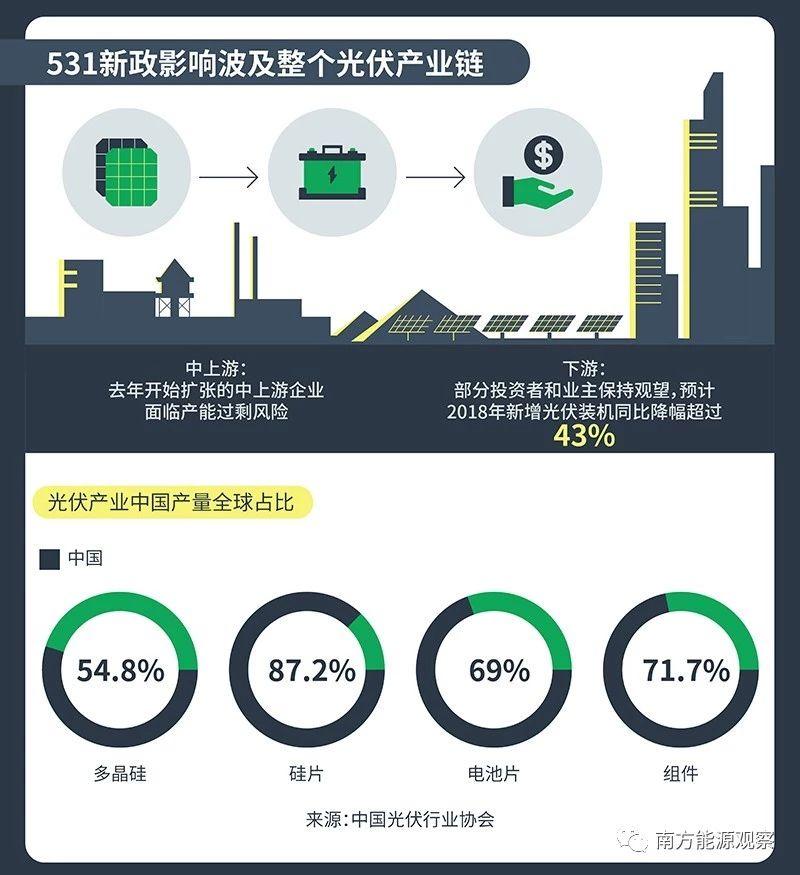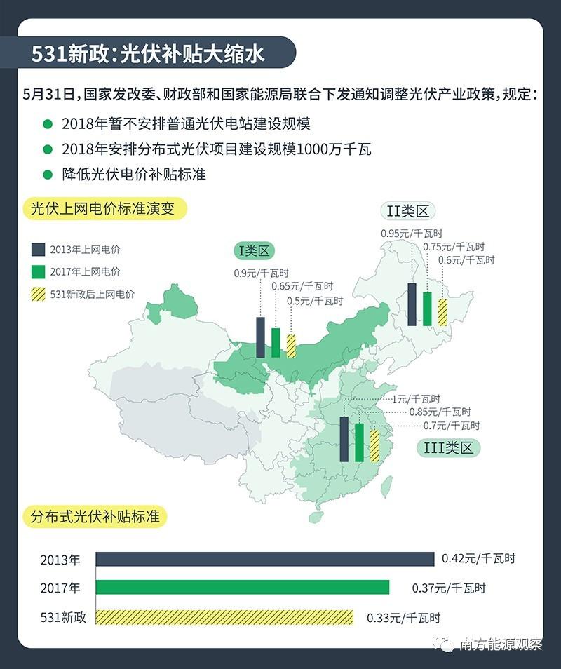 這是中國光伏“531新政”后的一個(gè)行業(yè)縮影?!?31新政”是國家發(fā)改委、財(cái)政部、國家能源局聯(lián)合下發(fā)的一份關(guān)于控制光伏發(fā)電新建規(guī)模和加快補(bǔ)貼退坡的通知,因從2018年5月31日起實(shí)施而得名,也因其推出的突然性,而對光伏產(chǎn)業(yè)產(chǎn)生巨大震動(dòng)。