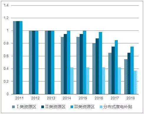 2011-2018年中國標(biāo)桿電價政策變化(元/kwh)