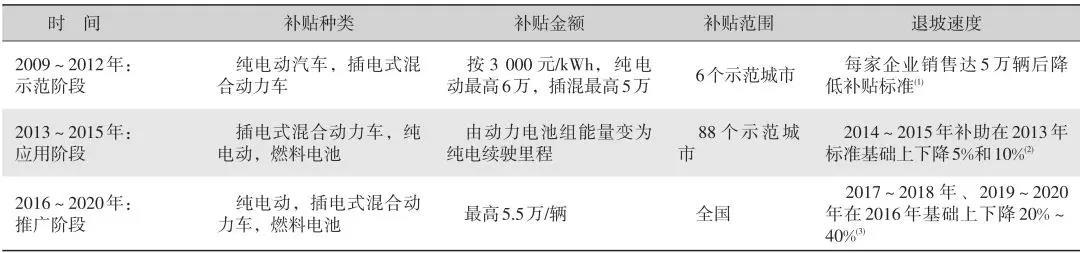表 1 補(bǔ)貼三階段與細(xì)則