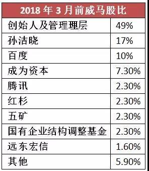 威馬的融資說明書顯示,持股較多的股東分別是創(chuàng)始團(tuán)隊(duì)、個(gè)人投資者孫曉潔、百度、成為資本、騰訊、紅杉、五礦、國有企業(yè)結(jié)構(gòu)調(diào)整基金和遠(yuǎn)東宏信。