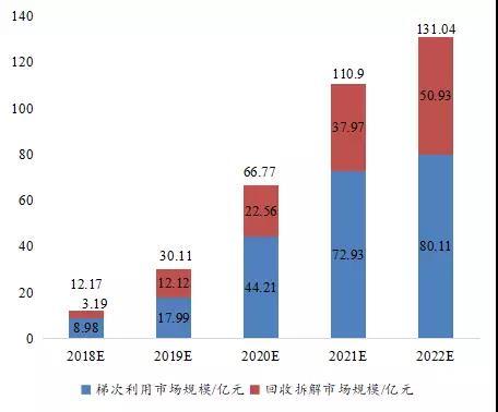 2018-2022年動(dòng)力電池梯次利用及回收市場(chǎng)規(guī)模預(yù)測(cè)