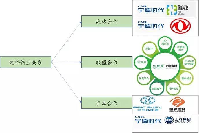 目前電池企業(yè)與車企已經(jīng)不滿足于簡(jiǎn)單的供求關(guān)系,越來越多的企業(yè)選擇更深層次的戰(zhàn)略合作,例如戰(zhàn)略合作、聯(lián)盟合作和合資等合作模式。