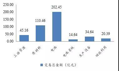 2017年動(dòng)力電池行業(yè)投資火爆:不完全統(tǒng)計(jì)國(guó)內(nèi)動(dòng)力電池相關(guān)投資項(xiàng)目多達(dá)100個(gè),總投資額超過2159億元。31個(gè)典型并購(gòu)事件涉及交易金額427.74億元,涉及上游資源和材料、中游電池生產(chǎn)及裝備及下游回收利用環(huán)節(jié)。