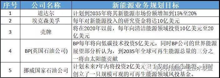 表 1:主要油氣能源公司新能源業(yè)務(wù)發(fā)展規(guī)劃