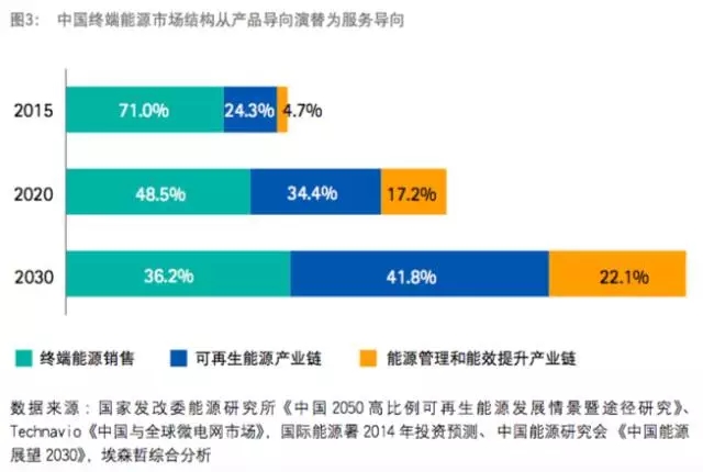 而在埃森哲此前的預(yù)測中,到2020年中國能源互聯(lián)網(wǎng)的總市場規(guī)模將超過9400億美元。未來三年中最具顛覆性的市場變化在于,能源電力行業(yè)的價值增長點(diǎn)從傳統(tǒng)產(chǎn)品銷售轉(zhuǎn)向以數(shù)字化為基礎(chǔ)的能源服務(wù)。其次,隨著能源消費(fèi)者用能習(xí)慣的轉(zhuǎn)變和區(qū)域性、分布式可再生能源解決方案的成熟,傳統(tǒng)的大跨度集中供能方式也將受到分布式能源就地產(chǎn)消的沖擊。