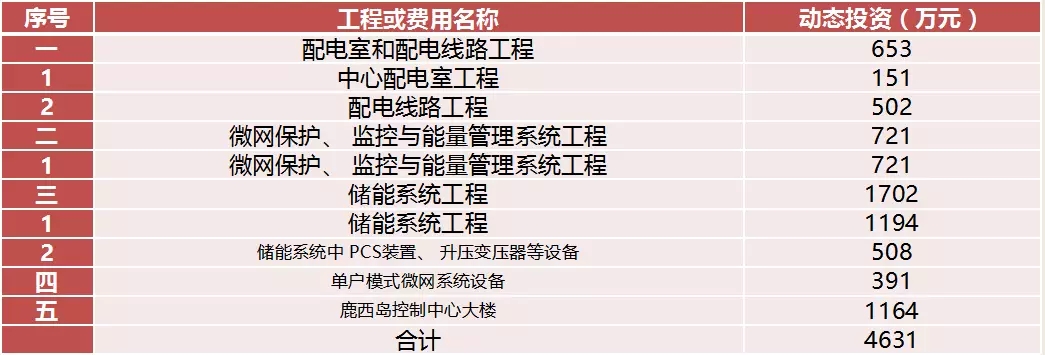 除風(fēng)力發(fā)電系統(tǒng)和光伏系統(tǒng)外,本工程初期投資建設(shè)成本動態(tài)投資金額總計4631萬元。