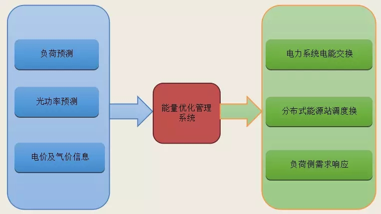 上圖是能源管理的系統(tǒng)結(jié)構(gòu)圖,系統(tǒng)將電動汽車充電站、樓宇能源綜合管控、燃氣輪機組、分布式光伏發(fā)電、用電量采集等數(shù)據(jù)上傳到高郵新區(qū)的能源管理中心,然后通過能量管理中心和主電網(wǎng)進行協(xié)調(diào)控制。