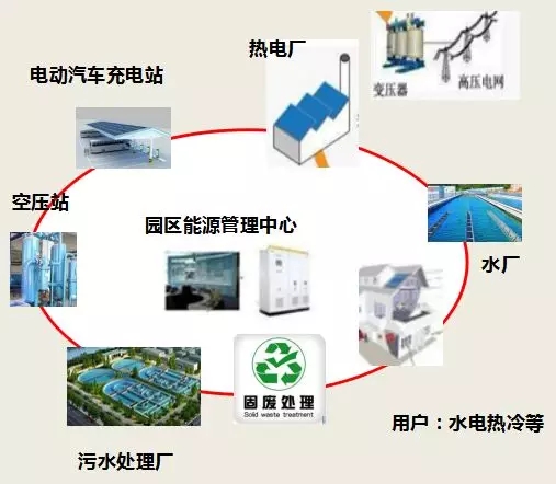 能源管理中心:結(jié)合各種類型園區(qū)的產(chǎn)業(yè)特點、能源資源情況、用能需求及園區(qū)能源運營方案,綜合利用多種類型能源(電、蒸汽、水、空氣)系統(tǒng)等,利用智能微網(wǎng)技術(shù),打造園區(qū)型能源互聯(lián)網(wǎng)。