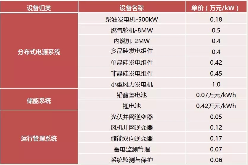 針對以上各案例,個人總結(jié)了一個微電網(wǎng)項目的投資估算標(biāo)準(zhǔn),僅供參考。