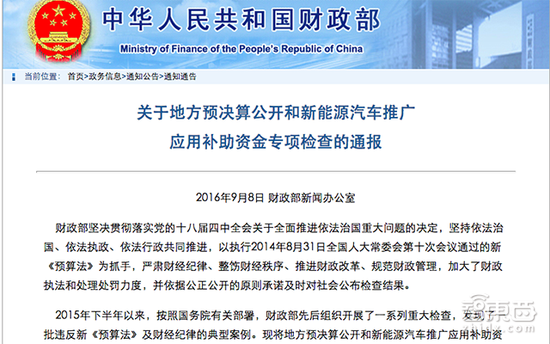 中國儲能網(wǎng)訊:9月8日,財政部發(fā)布了《關(guān)于地方預決算公開和新能源汽車推廣應用補助資金專項檢查的通報》,曝光了5個新能源汽車企業(yè)騙取國家補貼的典型案例,涉及財政補貼資金達10億元。