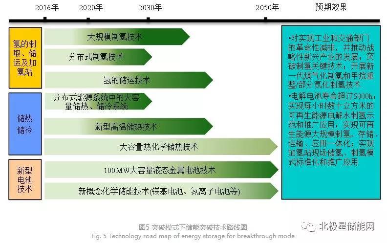 突破模式下的技術(shù)路線應(yīng)該積極探索新材料、新方法,實現(xiàn)具有優(yōu)勢的先進(jìn)儲能技術(shù)儲備,在液體電池、鎂基電池等新概念化學(xué)電池獲得突破;研究熱化學(xué)儲熱等前瞻性儲熱技術(shù),探索高儲熱密度、低成本、循環(huán)特性良好的新型材料配對機(jī)制;應(yīng)用V2G虛擬儲能前瞻理論,研究服務(wù)與支撐電動汽車推廣應(yīng)用技術(shù)。