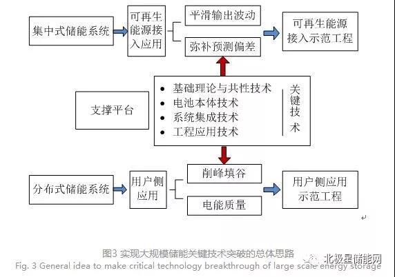 在充分評估該技術(shù)領(lǐng)域我國現(xiàn)有水平和國內(nèi)相關(guān)科研工作的基礎(chǔ)上,參考國外儲能技術(shù)相關(guān)技術(shù)路線圖,依據(jù)國家電網(wǎng)發(fā)展和建設(shè)對大規(guī)模儲能技術(shù)的迫切需求,應(yīng)該以集中式儲能系統(tǒng)在可再生能源接入中的應(yīng)用、分布式儲能系統(tǒng)在用戶側(cè)峰值負(fù)荷轉(zhuǎn)移和提高電能質(zhì)量中的應(yīng)用為目標(biāo)和突破口,集中力量解決制約大規(guī)模儲能技術(shù)在關(guān)鍵部件、容量、壽命、可靠性等方面的制約瓶頸,實現(xiàn)示范應(yīng)用。同時通過標(biāo)準(zhǔn)體系建設(shè)和完善,規(guī)范引導(dǎo)本體技術(shù)研發(fā),為儲能技術(shù)長期健康發(fā)展奠定基礎(chǔ),滿足電網(wǎng)發(fā)展和建設(shè)對大規(guī)模儲能技術(shù)和裝置的迫切要求。