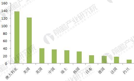 圖表3:2017年三季度全球新增在建/規(guī)劃電化學(xué)儲能項(xiàng)目裝機(jī)規(guī)模排名前十的國家(單位:MW)