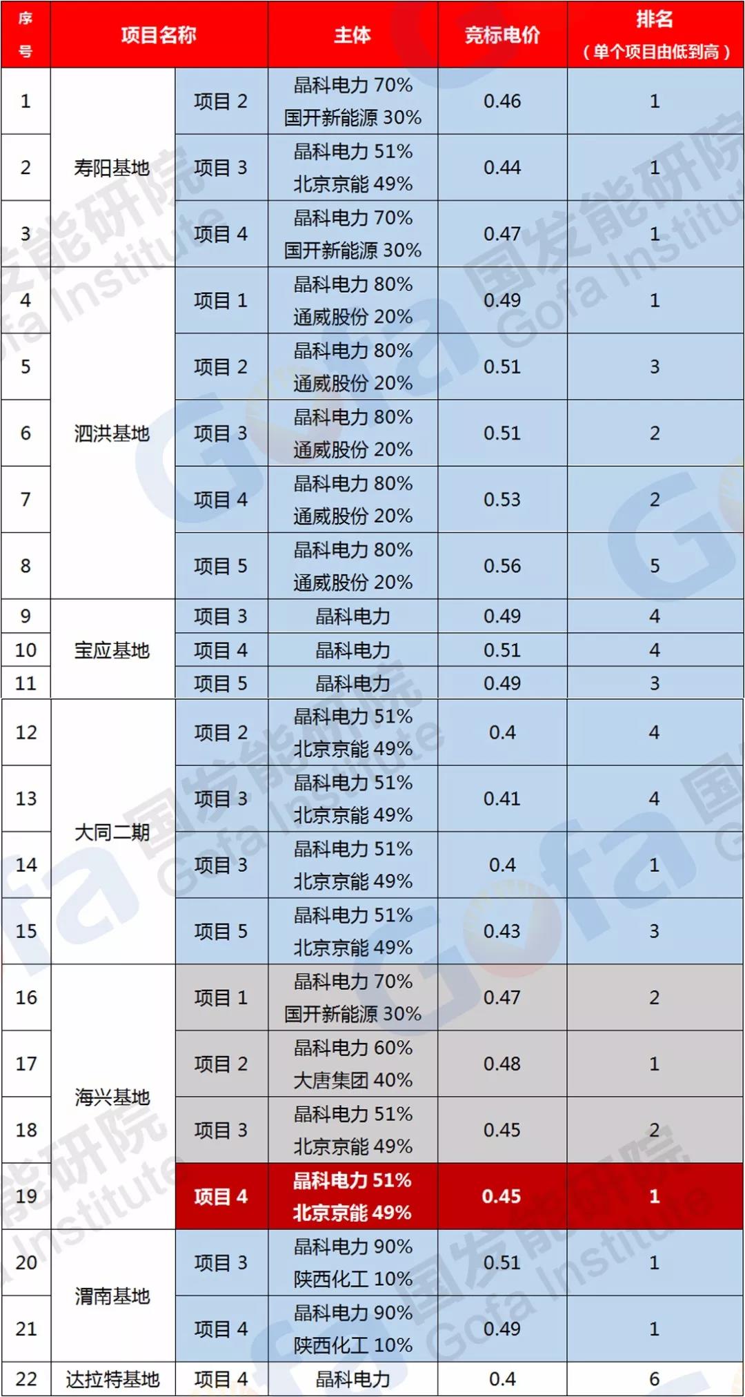 在單獨(dú)或聯(lián)合體參與投標(biāo)的幾個(gè)項(xiàng)目中,晶科電力擁有9個(gè)最低電價(jià)和4個(gè)次低電價(jià),競(jìng)標(biāo)電價(jià)基本都處于有利位置。可以看出,晶科能源的競(jìng)標(biāo)報(bào)價(jià)相當(dāng)精準(zhǔn)。即規(guī)避了廢標(biāo)范圍,又最大限度的保證以較低電價(jià)拿到高分,如果不是評(píng)審組計(jì)算方法泄露,那就是晶科電力的精算水平太高了!