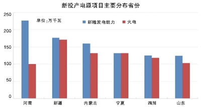 分省份看,新投產(chǎn)電源項目主要集中在河南、新疆、內(nèi)蒙古、寧夏、四川、山東。