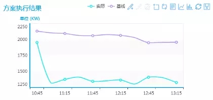 需求響應(yīng)基準(zhǔn)線是在非響應(yīng)日中對(duì)應(yīng)響應(yīng)日事件執(zhí)行時(shí)間段,每小時(shí)的電力負(fù)荷,需求響應(yīng)削減負(fù)荷量是通過(guò)響應(yīng)事件實(shí)際負(fù)荷和基準(zhǔn)線對(duì)比得到的。途中紫色曲線為該用戶基準(zhǔn)線,藍(lán)色曲線為響應(yīng)日實(shí)際負(fù)荷曲線,實(shí)際負(fù)荷與基準(zhǔn)負(fù)荷之間的差值即為需求響應(yīng)削減負(fù)荷量。