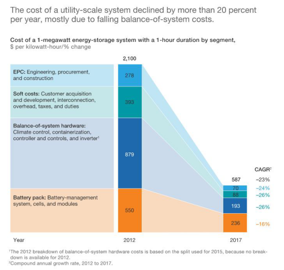 下降:電池和系統(tǒng)的成本平衡