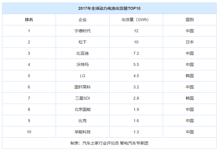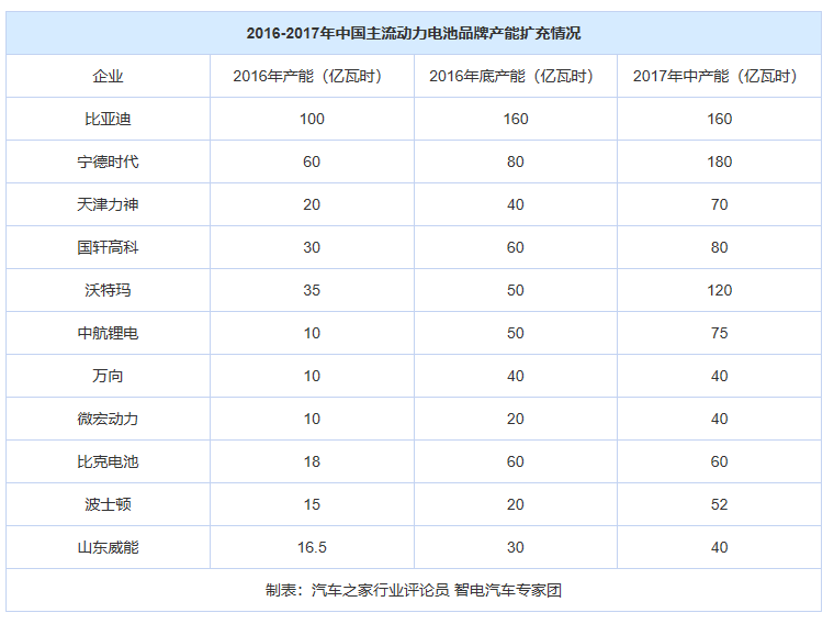 2016-2017年中國主流動力電池品牌產(chǎn)能擴(kuò)充情況