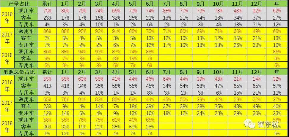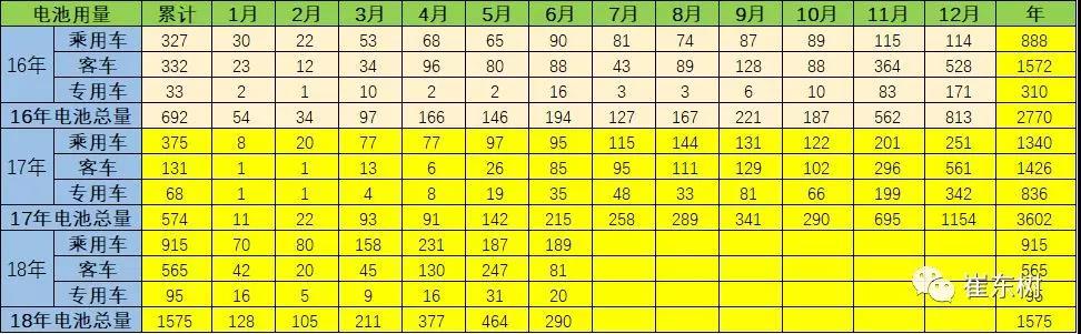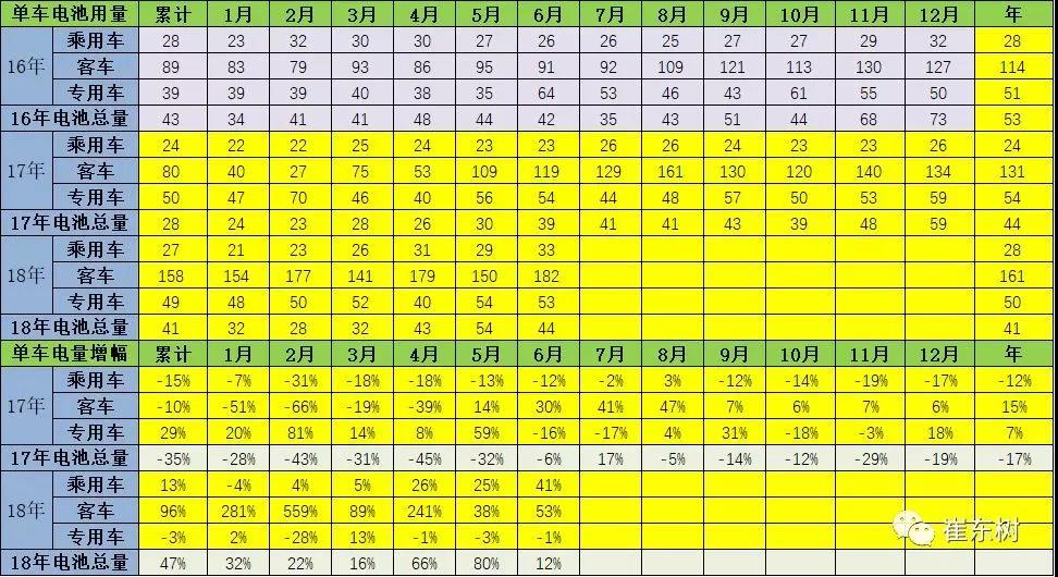 17年的新能源汽車產(chǎn)量環(huán)比上月都是持續(xù)增長。18年1-5月的同比持續(xù)高增長,6月的客車調(diào)整幅度較大,但乘用車帶電量33度、增長40%,拉動總體新能源車電池表現(xiàn)是很好的。