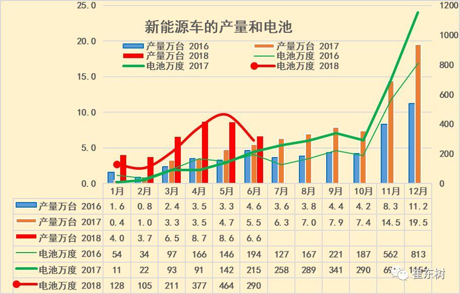 根據(jù)崔東樹個人測算,按照汽車生產(chǎn)合格證數(shù)據(jù):2018年6月新能源汽車產(chǎn)量6.6萬臺,增長21%;電池裝機(jī)總電量約290萬度,同比增長35%。由于3-5月的年初搶裝特征使新能源汽車產(chǎn)量爆發(fā)增長。6月的新補(bǔ)貼政策起步期的產(chǎn)量增長仍是較好。