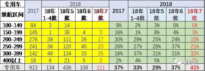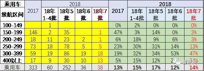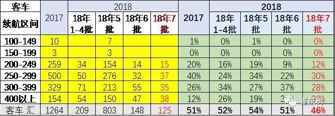 18年第7批的客車的續(xù)航里程有所提升,續(xù)航里程主要是靠300公里的車型推出增多的促進。