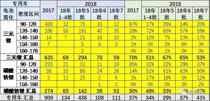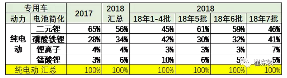 專用車的目錄是磷酸鐵鋰和三元鋰的共同推動,18年第1-4批的磷酸鐵鋰達到50%雖是偏高,低成本需求依舊相對較多。第二批的磷酸鐵鋰也是很多。