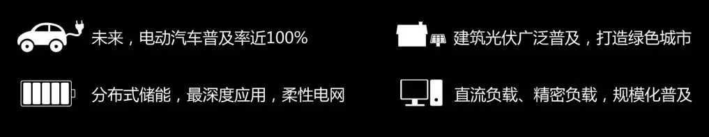 以光伏系統(tǒng)為例,光伏出來的都是直流電,通過DC/DC的電壓變換,然后做DC/AC掛到交流母線上。儲能也是通過直流變交流掛到網(wǎng)上。將光伏發(fā)電傳送到車上的時候,不但要把直流變成交流,還要再把交流變成直流,這樣能量就會有無謂的損失。上圖中右側(cè)是直流微網(wǎng)的架構(gòu),把光伏、儲能和汽車都直接并在直流側(cè),用一個超級PDU做能量的分配,實現(xiàn)在直流端能量的直接的相互的流動。