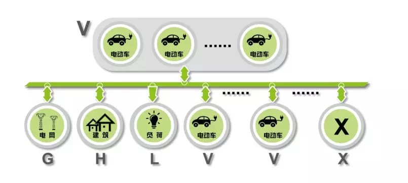 在這樣的系統(tǒng)里面,不得不提到車的作用。電動汽車是未來的發(fā)展趨勢,這里引用國網(wǎng)提出的電動汽車V2G的概念,V2G就是車對電網(wǎng)放電的意思,引進直流母線之后,就不用先V2G,然后再G到負荷了,直接就可以V2H或者V2L,這樣就形成了一個新的概念 “V2X”,即通過直流側(cè)的交互,做到源-網(wǎng)-荷-儲-車的友好互動,實現(xiàn)車對多種能源直接充放電的管理。