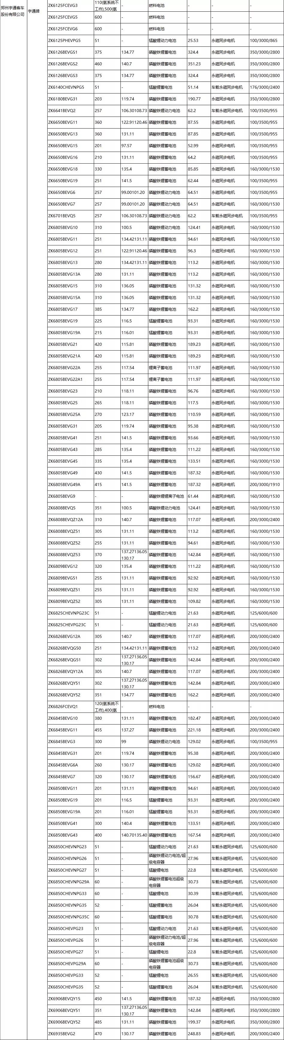 3、進(jìn)入的19個(gè)燃料電池客車的續(xù)航里程最高達(dá)到600km,有2個(gè)車型(ZK6125FCEVG5/ZK6125FCEVG6),均為鄭州宇通客車股份有限公司產(chǎn)品。