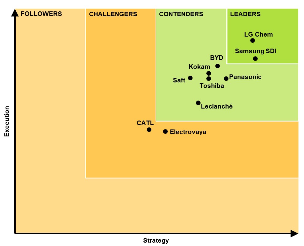 第四至第十名分別是日本松下、美國柯卡姆、日本東芝、法國帥福特(Saft)、勒克朗謝(Leclanché)、加拿大Electrovaya和寧德時代(CATL)。