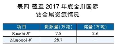 金川國(guó)際是一家在香港上市的礦產(chǎn)資源開(kāi)發(fā)與經(jīng)營(yíng)商,主要開(kāi)發(fā)經(jīng)營(yíng)銅、鈷礦產(chǎn)品。 金川國(guó)際的核心資產(chǎn)位于剛果(金)和贊比亞,擁有高品質(zhì)的銅、鈷的4家礦區(qū)共8座礦山,擁有鈷金屬資源量為36.2萬(wàn)噸(見(jiàn)表四)。