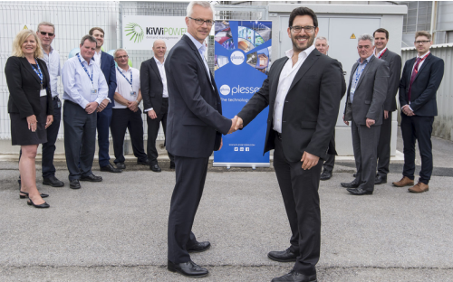 Plessey公司首席財務(wù)官Iain Silvester(左)與Kiwi Power公司首席執(zhí)行官Yoav Zingher日前出席電池儲能系統(tǒng)發(fā)布儀式。