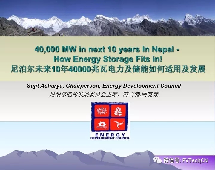 中國(guó)儲(chǔ)能網(wǎng)訊:12月8日,尼泊爾能源發(fā)展委員會(huì)主席蘇吉特.阿克萊(Sujit Acharya)在深圳Solar plus國(guó)際高峰論壇做了《尼泊爾未來(lái)10年40000兆瓦電力及儲(chǔ)能如何適用及發(fā)展》的主題演講報(bào)告。