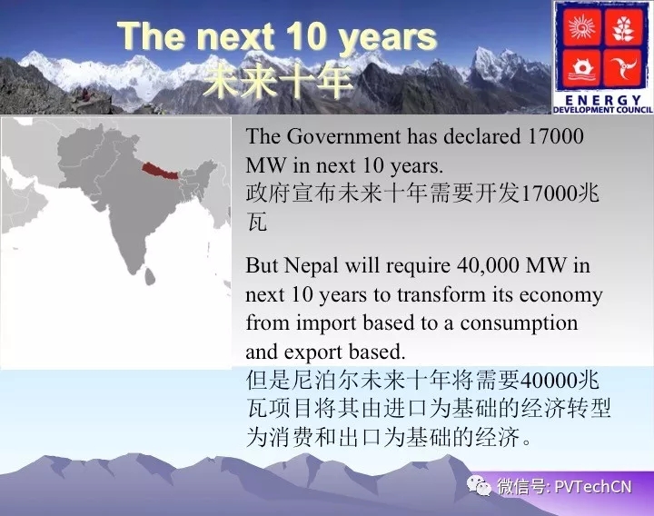 他表示:尼泊爾能源總需求7000兆瓦,目前電力傳輸和分配者由尼泊爾電力局壟斷,政府宣布未來(lái)十年需要開發(fā)17000兆瓦,需求的能源儲(chǔ)備為3400MW-8000MW。