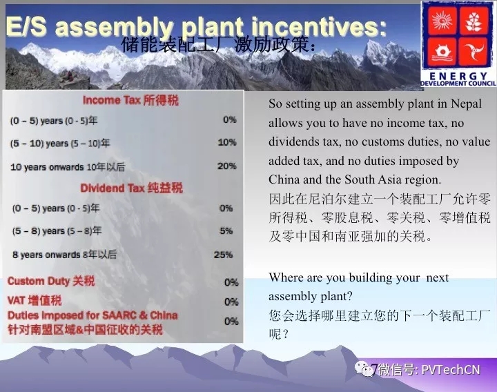 為了發(fā)展儲(chǔ)能,尼泊爾政府發(fā)布了相關(guān)的支持政策,包括所有微電網(wǎng)設(shè)備征收1%進(jìn)口稅,第一個(gè)10年免征得所有稅,增值稅可退稅。