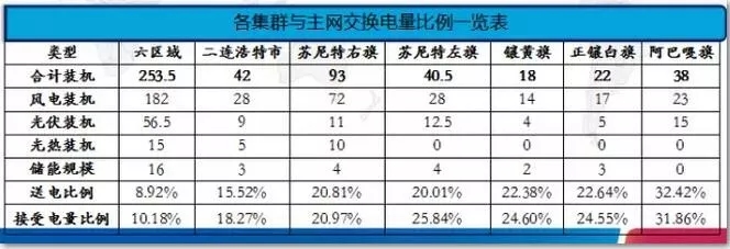 根據(jù)建模仿真分析數(shù)據(jù)結(jié)果,對集群與主網(wǎng)電力平衡分析,進(jìn)一步研究集群運行與主網(wǎng)運行電力交換情況。規(guī)劃區(qū)域內(nèi)(除阿巴嘎旗集群外)其他各集群與主網(wǎng)電量交換比例均控制在25%以內(nèi),六區(qū)域集群聯(lián)網(wǎng)運行后向主網(wǎng)電量送電比例為8.92%,接受電量比例為10.18%。可再生能源電源與用電負(fù)荷電力平衡結(jié)果較好。