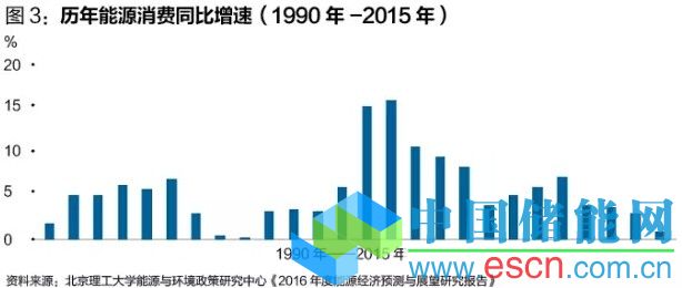 從2012年開始,中國能源消費增速就屢創(chuàng)新低。2015年的能源增速之低,出乎所有人的意料。去年全國能源消費總量43億噸標煤,同比增長不足1%,創(chuàng)下了自1999年以來的最低增速。