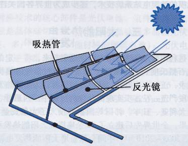 近年來,在太陽能熱發(fā)電技術上,新出現的理念是:用一種新型的"陳式定日鏡 + 小塔支撐的集熱面",來克服已走向產業(yè)化的"槽式"電站具有的嚴重熱量損失的重大缺點. 圖2是槽式電站的示意圖.
