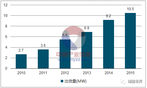 2015年我國燃料電池行業(yè)出貨量約10.5MW,同比2014年的9.2MW增長了14.13%,近幾年我國燃料電池行業(yè)出貨量情況如下圖所示: