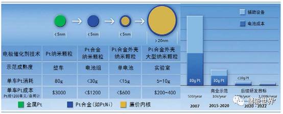 燃料電池催化劑 Pt 減量技術路線圖及成本控制預期