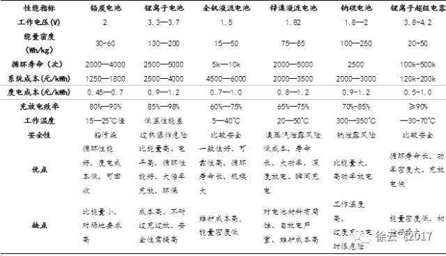 表 1:主流電化學(xué)儲能技術(shù)性能比較
