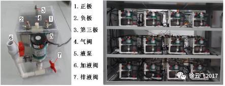 圖 8:鋅鎳單液流電池單體(左)與電池組(右)