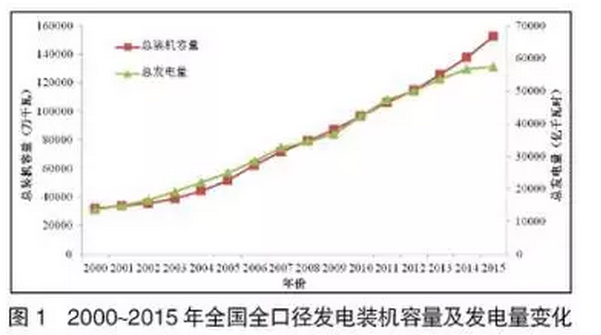 截至2015年底,全國全口徑發(fā)電裝機容量15.3億千瓦,比2010年增長57.8%。新世紀(jì)以來,以5年為周期,全國裝機平均增速情況分別是:2001~2005年為10.1%,2006~2010年為13.3%,2011~2015年為9.5%。比較可見,“十二五”后期,中國經(jīng)濟進入新常態(tài),電力發(fā)展明顯放緩,拉低了平均增速,但由于電力建設(shè)周期“慣性”以及可再生能源裝機增長較快等原因,我國發(fā)電裝機每年仍保持增加1億千瓦左右的增長。圖1為中國全口徑發(fā)電裝機容量及發(fā)電量年增長圖。從圖中可以看出,盡管發(fā)電裝機容量繼續(xù)保持總量的快速增長,但發(fā)電量的增長自2012年以來明顯放緩,表明中國電力結(jié)構(gòu)向清潔化發(fā)展以及電力供需矛盾由短缺向相對過剩轉(zhuǎn)變。